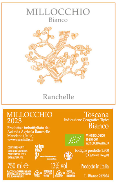 Millocchio Bianco is produced from separate fermentations of Ansonica and Procanico, blended after fermentation and aged for one year on regenerated 500 l oak barrels.
